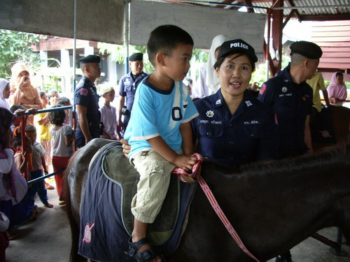 ในชุมชนจรเข้ขบ ให้รู้จักชนิดและโทษของยาเสพติด ด้วยการนำม้าเล็กมาให้เด็กและเยาวชนได้ขี่เพื่อเป็นสือดึงดูดความสนใจ