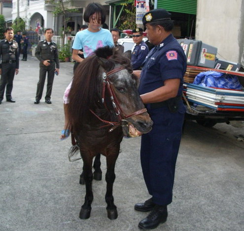 สว.งานฝึกอบรม กก.4 บก.ตปพ.พร้อมกับเจ้าหน้าที่ตำรวจ 8 นาย ม้าเล็ก 4 ม้า ร่วมกับ ผบช.น. โดยอบรมเด็กและเยาวชน